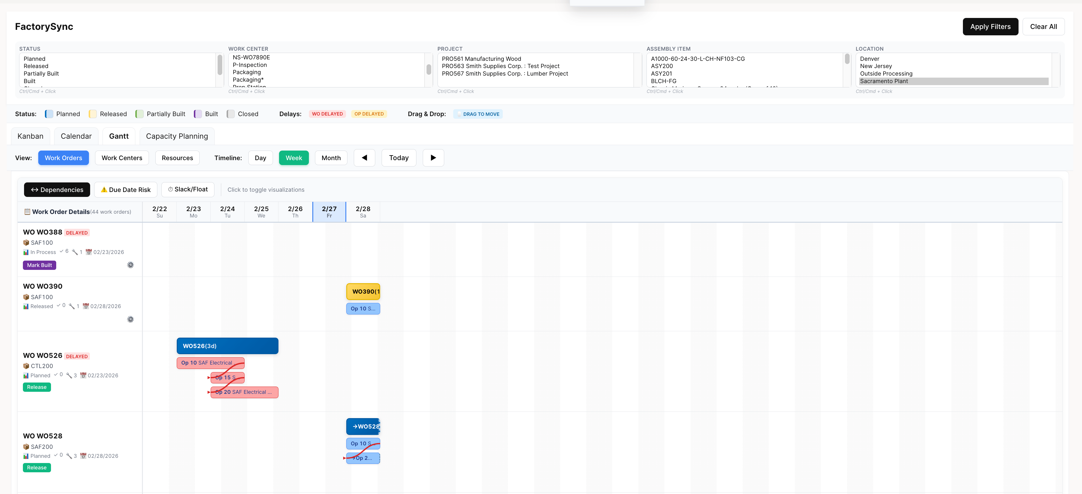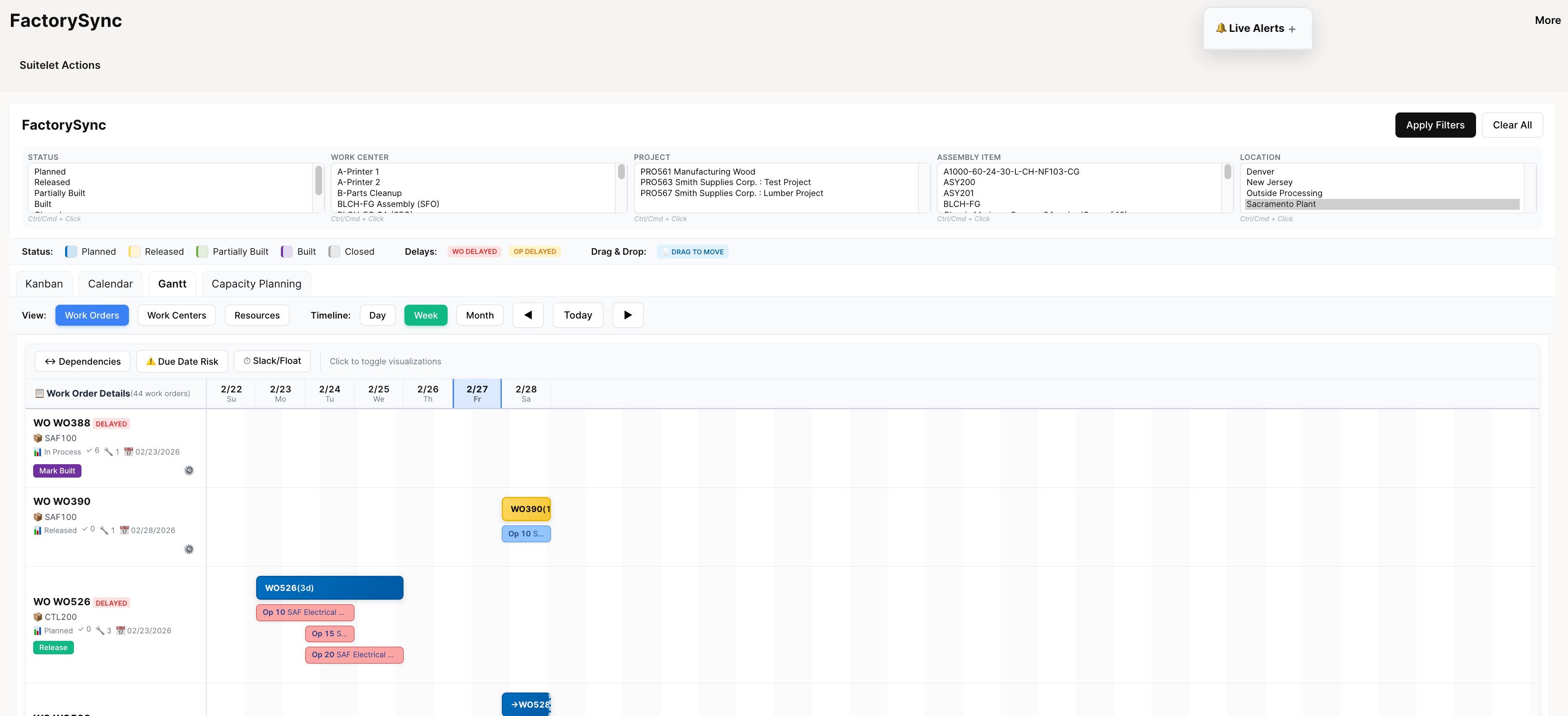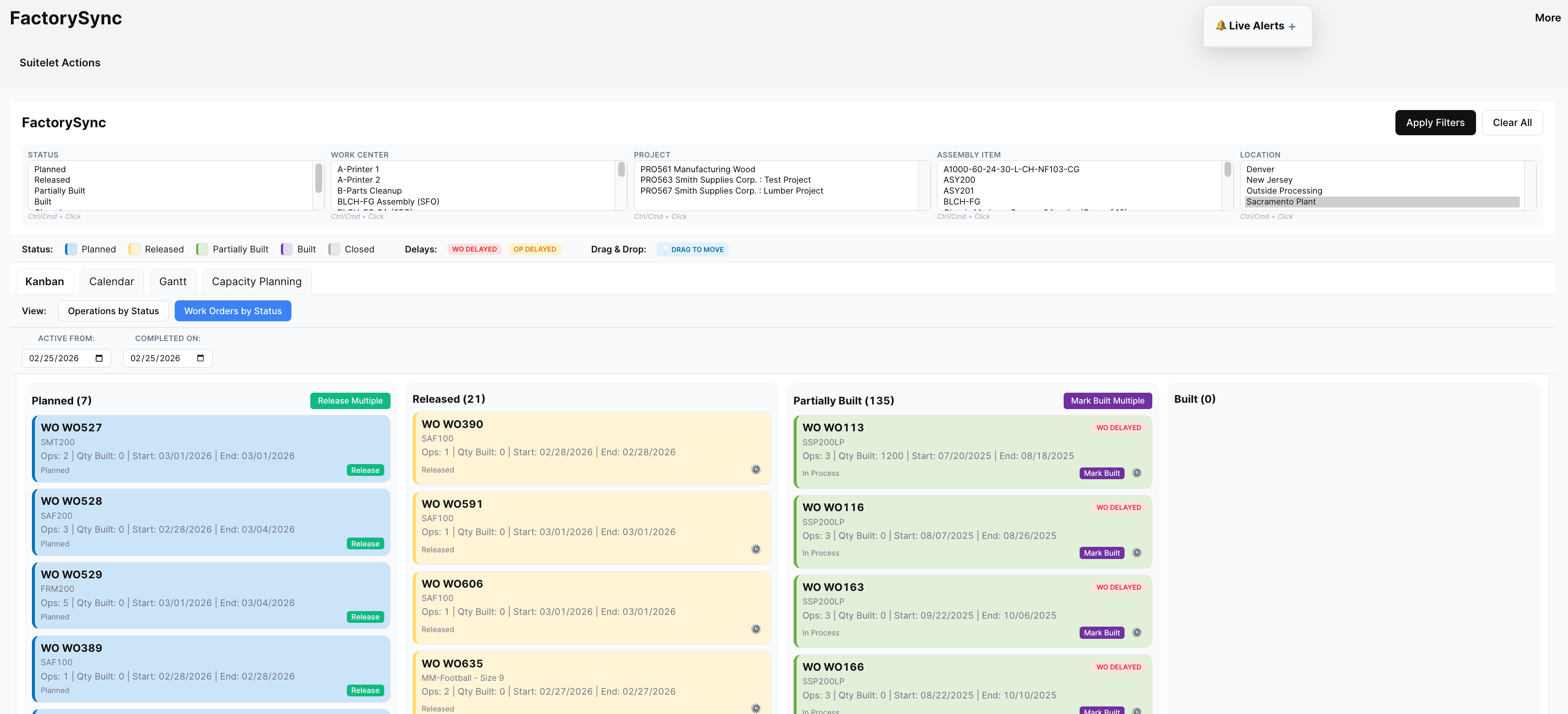 We built FactorySync to add exactly this kind of visibility to NetSuite. It brings visual scheduling, capacity planning, and real-time alerts to your existing manufacturing setup. No separate MES system, no integration project, no new logins for your team to forget.
